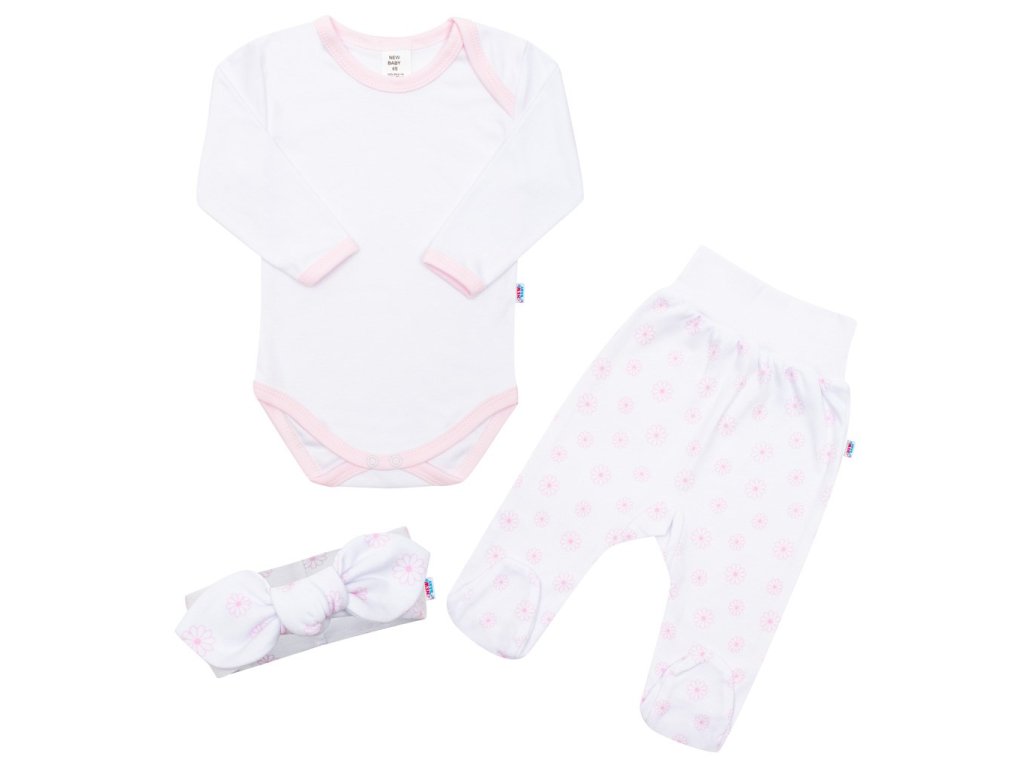 Roztomilá 3-dielna bavlnená súpravička českej značky New Baby Lili. Súpravička obsahuje čelenku, body, polodupačky a je vhodná pre bábätká už od narodenia pre svoju jemnosť a mäkkosť. Polodupačky zdobia roztomilú detskú potlač. V páse je širší pružný lem. Jednofarebné body s dlhým rukávom má zapínanie na cvočky medzi nožičkami čo uľahčuje obliekanie a prebaľovanie. Čelenku zdobí roztomilá detská potlač, je pružná a veľmi príjemne sa nosí. Súpravička je vyrobená z príjemného a kvalitného materiálu, v ktorom sa bude Vaše bábätko cítiť príjemne. Zloženie: 100% bavlna.Dodatočné parametre
