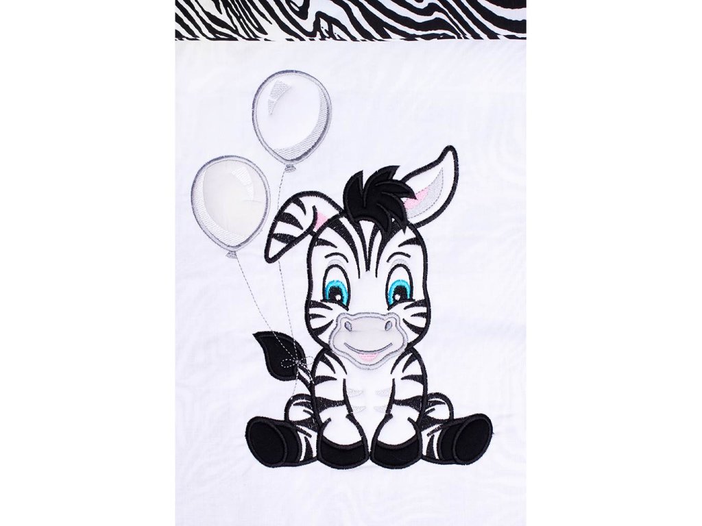 Detská bavlnená 3-dielna súprava do postieľky New Baby Zebra pre bábätká. Súpravu zdobí veselý obrázok zebry s pruhmi a je celopotlačená výraznými čiernobielymi pruhmi. Je vyrobená z mäkkého, príjemného materiálu. Súprava obsahuje obliečky na vankúšik cca 40x60 cm, obliečky na perinku cca 100x135 cm a mantinel cca 180 cm. Materiál 100% bavlna.Tieto výrobky sú bezpečné, pretože: