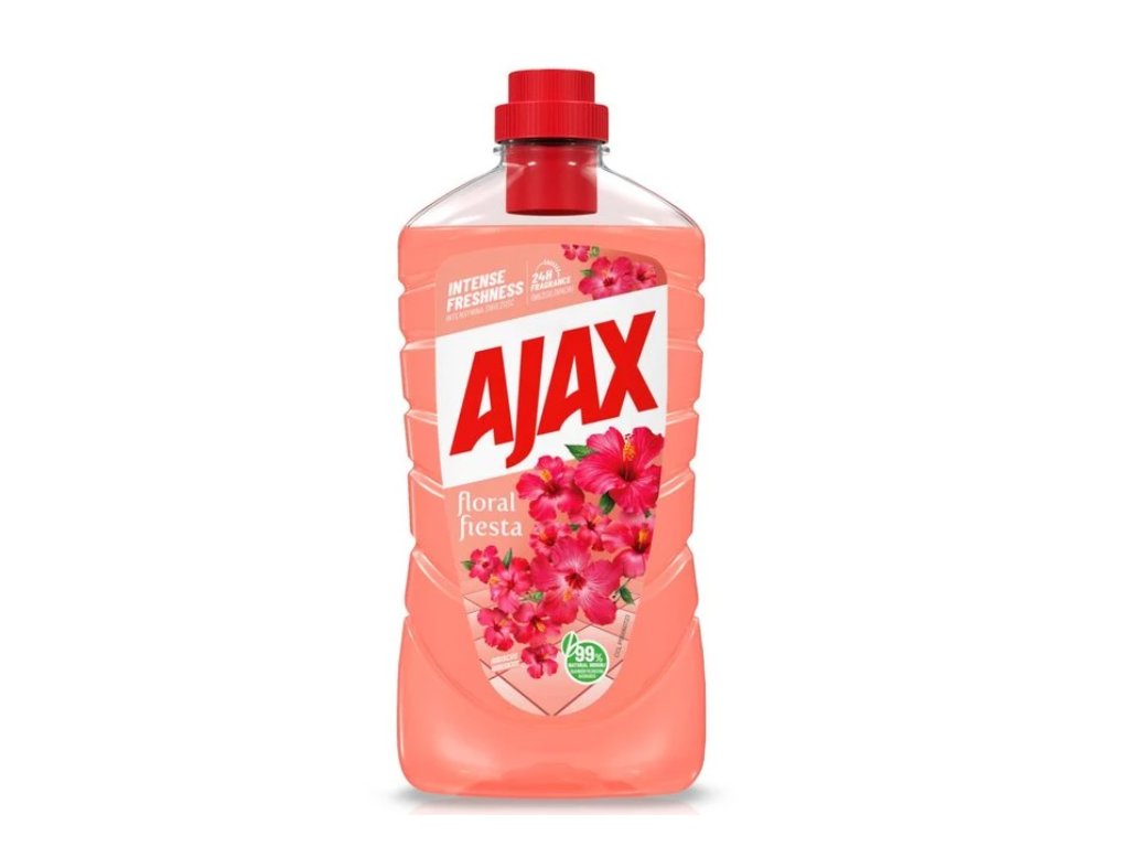 Ajax s jeho unikátnou sviežosťou, aktivujúcou sa vzduchom, uvoľňuje svoju kvetinovú vôňu nepretržite po dobu viac ako 24 hodín. Čistiaci prostriedok pre všetky plochy v domácnosti. Objavte Ajax pre žiarivo čisté povrchy a príjemne svieži domov až na 24 hod. po upratovaní. Dokonalá čistota, žiarivý lesk, bez oplachovania. Použitie na podlahy v celej domácnosti, na plochy v kuchyni, kúpeľni a pod.