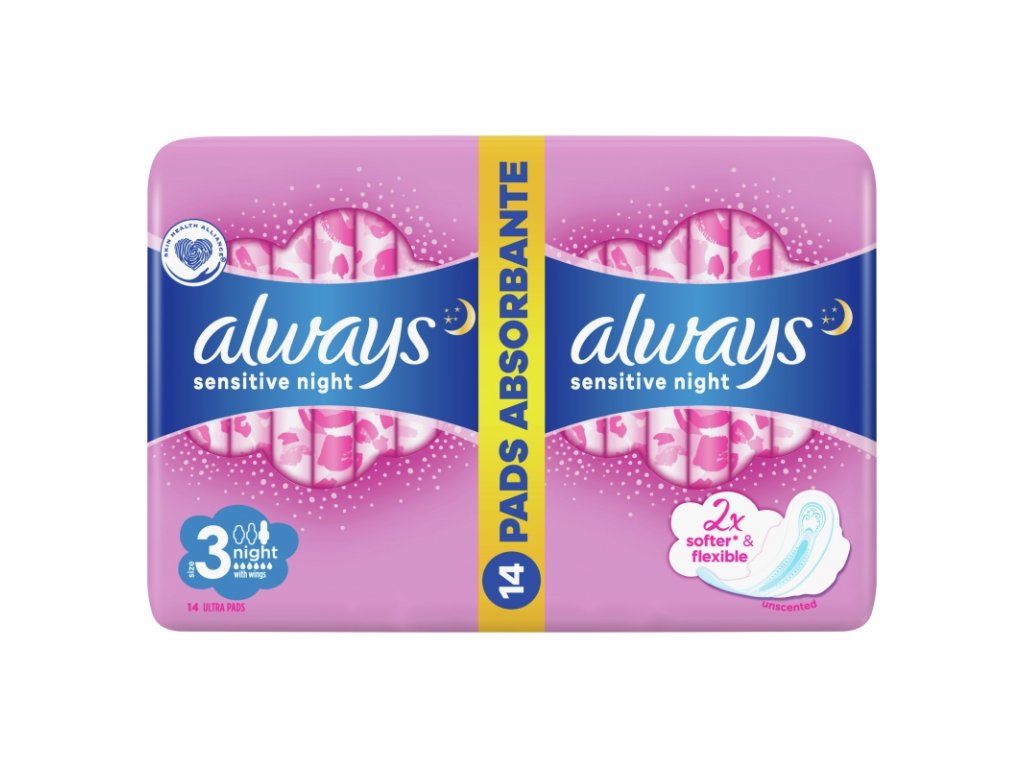Povrchová vrstva hebká ako bavlna a unikátne komfortné zóny zaisťujú vašej jemnej pokožke väčšie pohodlie po celú noc. Ideálna na noc alebo pre dni najsilnejšej menštruácie. Krídelká lepšie chránia po stranách a pomáhajú udržiavať vložku na mieste. Vložky s krídelkami Always Ultra Sensitive Night (veľkosť 3) sú najlepšie vložky radu Always Sensitive pre bezstarostné noci.
