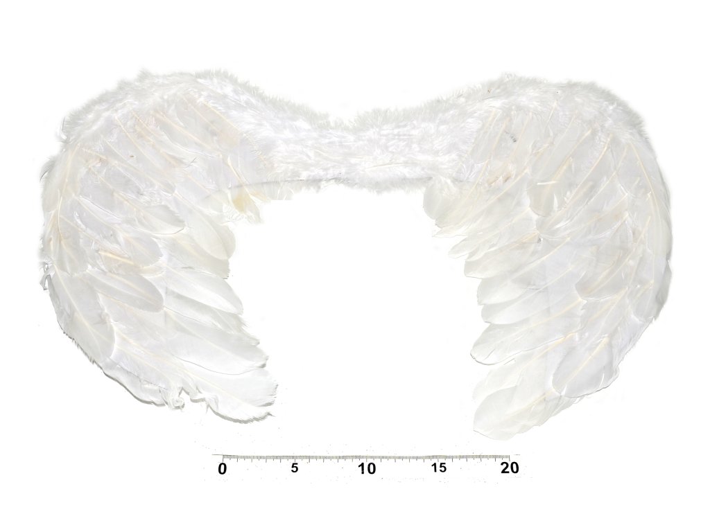 Anjelské krídla o rozmere 55 x 40 cm sú vyrobené z peria. Pripevňujú sa pomocou dvoch gumičiek. Anjelské krídla sú nepostrádateľným doplnkom každého správneho anjelika, ktorý ich k svojmu kostýmu potrebuje, aby bola zaručená vierohodnosť.Dodatočné parametre