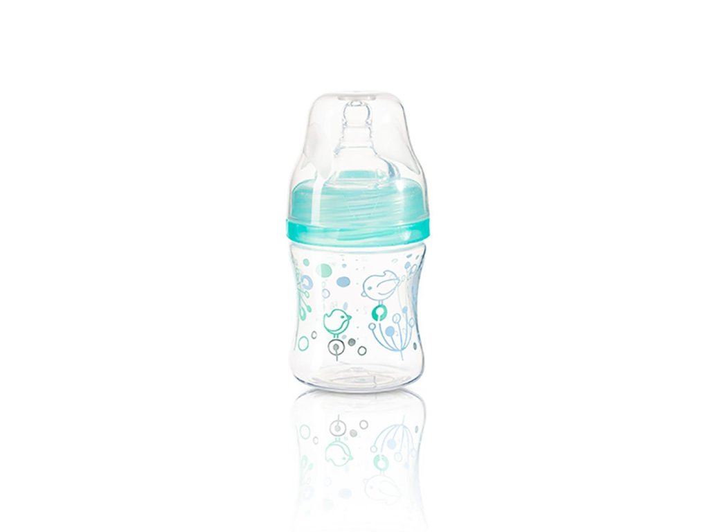 Antikolíkové fľaše so širokým hrdlom boli navrhnuté tak, aby zaistili maximálnu bezpečnosť a zdravie dieťaťa počas kŕmenia. Vyrobené z jemného hygienického silikónu, Cumlík, vyrobený z jemného hygienického silikónu, sa pri saní predlžuje a prirodzene napodobňuje prsia matky, čo uľahčuje zmenu z dojčenia na kŕmenie z fľaše. Trojitý systém odvetrania cumlíka zabraňuje tvorbe podtlaku vo fľaštičke a chráni dieťa pred kolikou. Tvar fľaše sa prispôsobí ruke, čo uľahčuje kŕmenie.