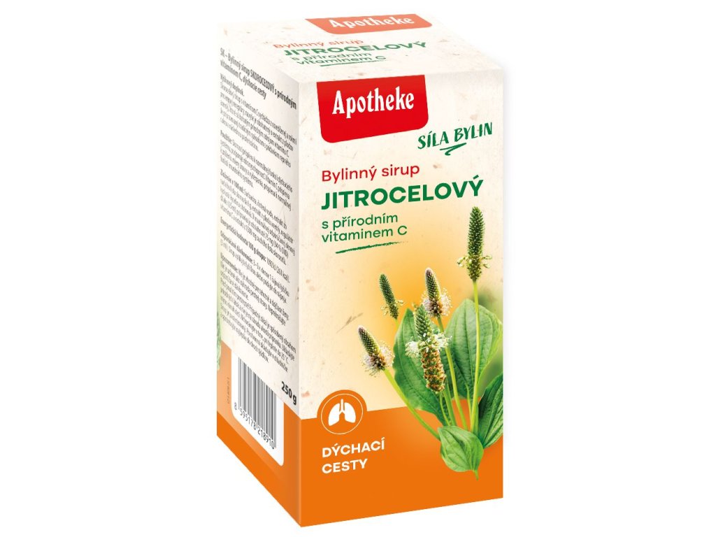 Použitie: Skorocel prispieva k normálnej funkcii dýchacieho systému, podporuje obranyschopnosť. Vitamín C prispieva k zníženiu miery únavy a vyčerpania, prispieva k normálnej funkcii imunitného systému. Zaradenie: Doplnok stravy. Bylinný sirup. Zloženie v 100 ml: Sacharóza, čistená voda, extrakt zo suchého listu skorocelu 6 g, extrakt z plodu aceroly, regulátor kyslosti: kyselina citrónová. Obsahuje 75 mg (94% RDA) vitamínu C a extrakt z 1500 mg suchého listu jitro. Odporúčané dávkovanie: 3 - 5x denne 1 čajovú lyžičku (5 ml). Sirup aplikujte lyžičkou alebo pridajte do teplého nápoja. Upozornenie: Určené pre dospelých a deti od 3 rokov. Nevhodné pre tehotné a dojčiace ženy. Nie je určené ako náhrada pestrej stravy. Neprekračujte odporúčané dávkovanie. Pred použitím pretrepte! Prípadný zákal je spôsobený obsahom prírodných látok a nie je na závadu akosti prípravku. Neobsahuje alkohol. Bez prídavku farbív. Ukladajte mimo dosahu detí. Skladovanie: Uchovávajte v tme, pri teplote do 25 °C. Po otvorení skladujte v chladničke a spotrebujte najlepšie do 2 týždňov. Energetická hodnota 100 g sirupu: 1092 kJ (261 kcal). Obsah živín v 100 g: bielkoviny 0 g, tuky 0 g, sacharidy 65 g. Hmotnosť netto: 250 g Výrobca: MEDIATE, sro, Dolné Libchavy 325, 561 16 Libchavy, ČRDodatočné parametre