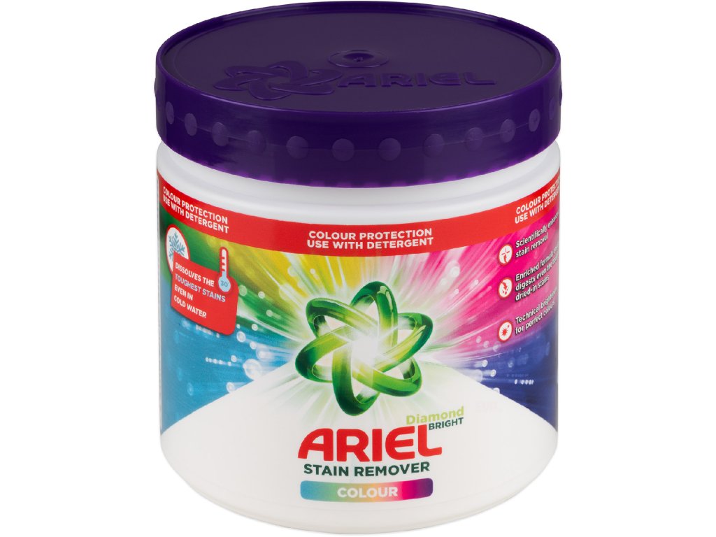 Ariel Color je účinný odstraňovač škvŕn na farebných tkaninách, ktorý odstraňuje aj tie najodolnejšie škvrny. Výrobok sa ľahko používa, nepoškodzuje tkaniny a poskytuje vynikajúce výsledky aj pri nízkych teplotách. Odstraňovač škvŕn je vhodný aj na vlnu a hodváb