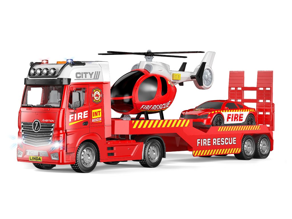 Auto hasiči ťahač a helikoptéra s efektmi set 55 cm