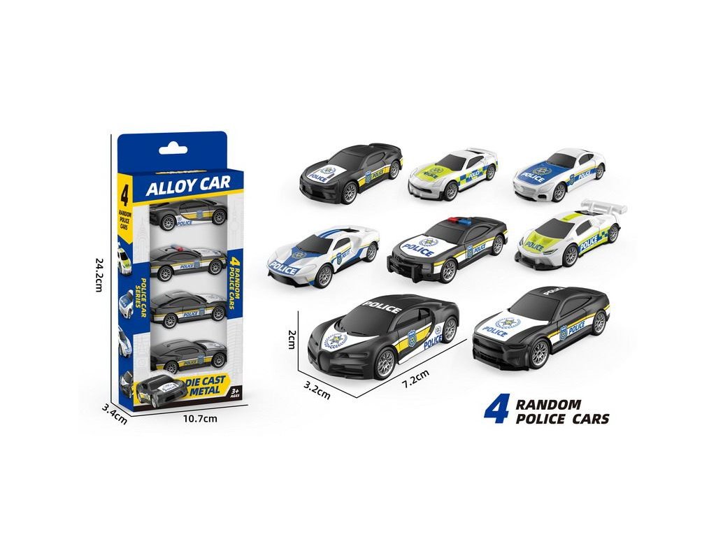 Auto polícia na spätné natiahnutie. Rozmery 7,3x1,7x2,5 cm. Balenie obsahuje 4 ks. 8 variant.Dodatočné parametre