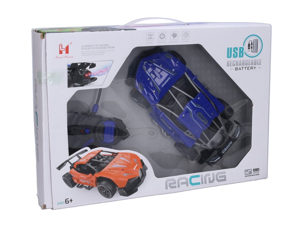 Auto závodné fajčiace RC na diaľkové ovládanie. Rozmery 22x11x6, 4 cm. Pištoľový ovládač. Batériový pack 3.7V 400mAh do auta súčasťou, 2xAA batérie do ovládač nie sú súčasťou. USB kábel súčasťou. Nabíjanie 60 min, dosah 25 m. Nádržka na vodu v hornej časti auta pred krídlom.Dodatočné parametre