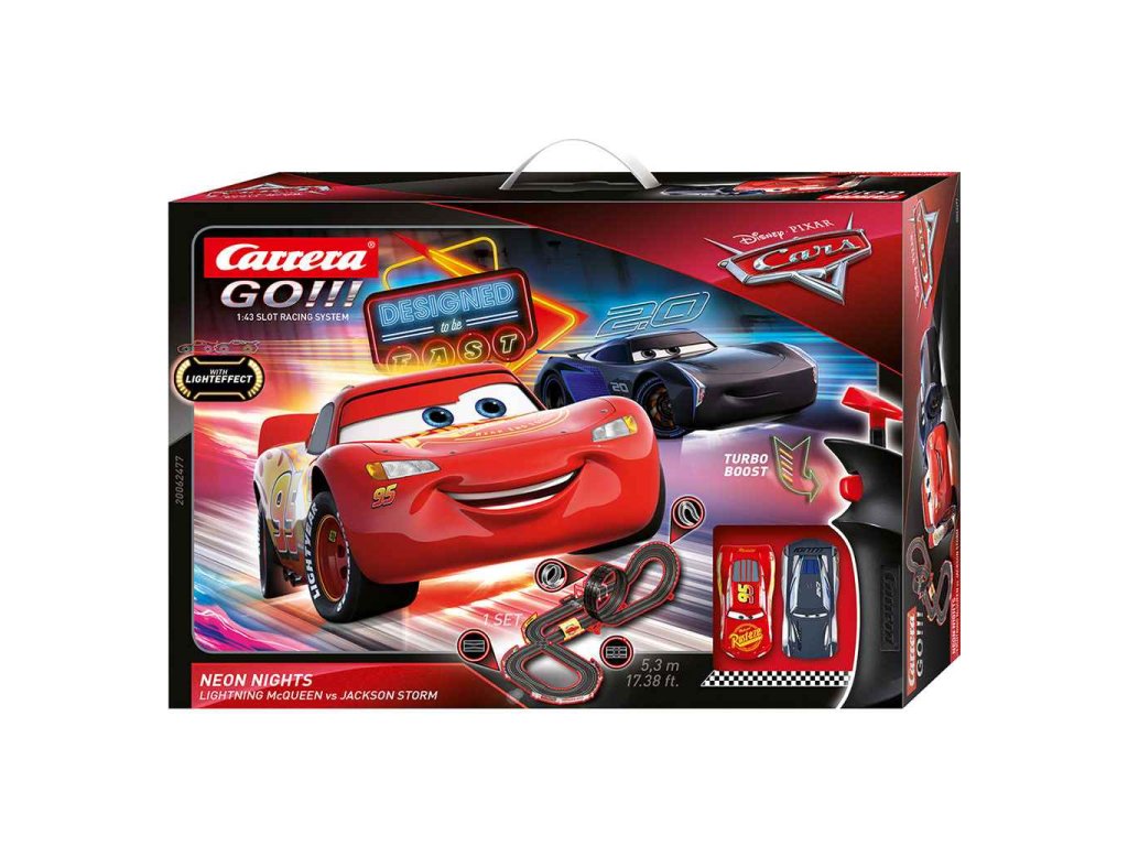 Autodráha Carrera Go Cars Neon Nights 5,3m na diaľkové ovládanie je kombináciou veľkého nadšenia, rýchlosti a zábavy, ktorá pohltí veľké aj malé. Preteky si zamiluje každý chlapec aj dievčatko. Vďaka autodráhe sa budú cítiť ako skutoční pretekári. Pretekajte s autíčkami McQueen a Jackson Storm z filmu Disney.