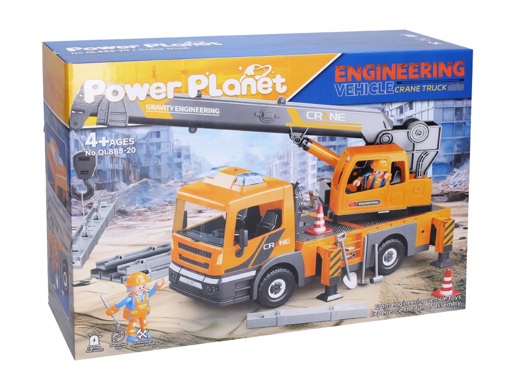 Autožeriav s efektmi stavebnice. Veľkosť žeriava 41cm. Pohyblivé rameno žeriava. Svetelné a zvukové efekty. Batéria 2xAAA nie je súčasťou balenia.Dodatočné parametre