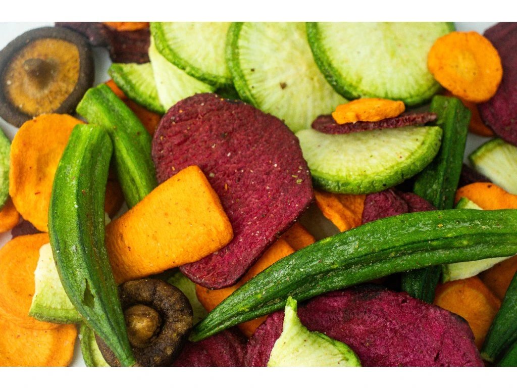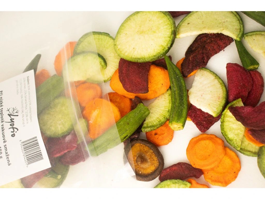 Vďaka vákuovému vyprážaniu pri nízkej teplote zostávajú všetky suroviny chutné, krásne farebné a bez zbytočnej mastnoty. Ideálne na maškrtenie pri filme, ako topping na ázijské rezance alebo len tak do krabičky na desiatu do práce alebo na výlet.