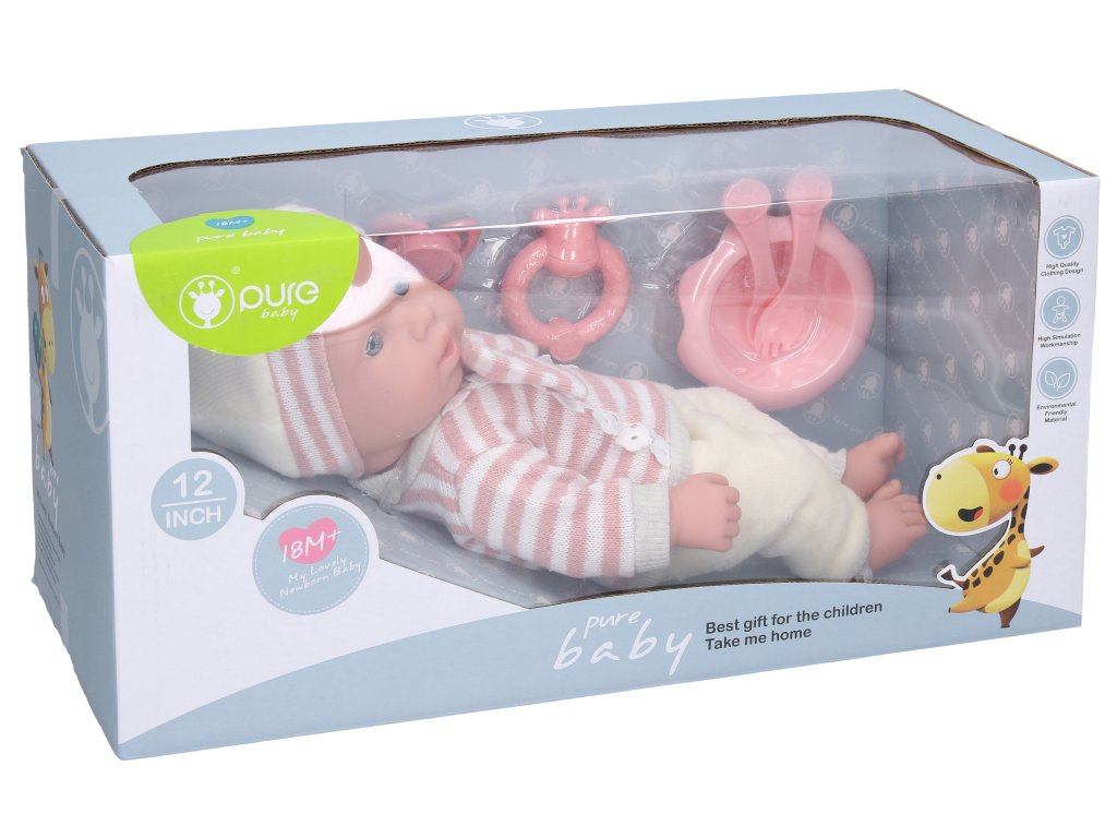 Bábätko. Veľkosť 30cm. Príslušenstvo: cumlík, hrkálka, miska s príborom.Dodatočné parametre
