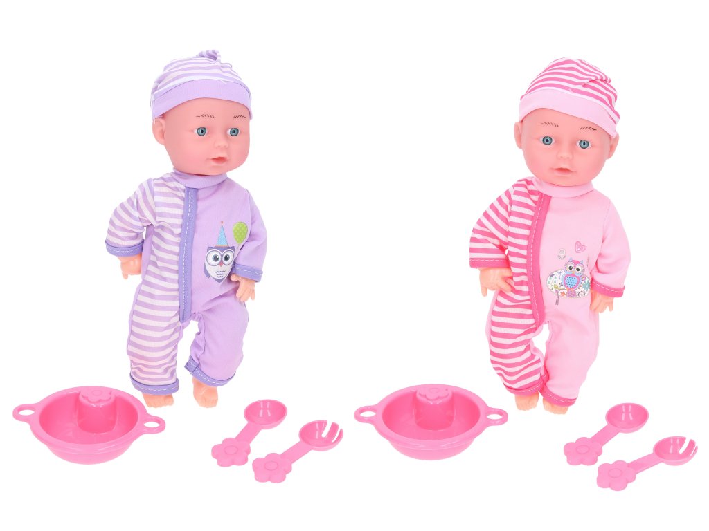 Bábätko s doplnkami. Veľkosť 26 cm. Súčasťou bábätko, miska, 2 lyžice.Dodatočné parametre