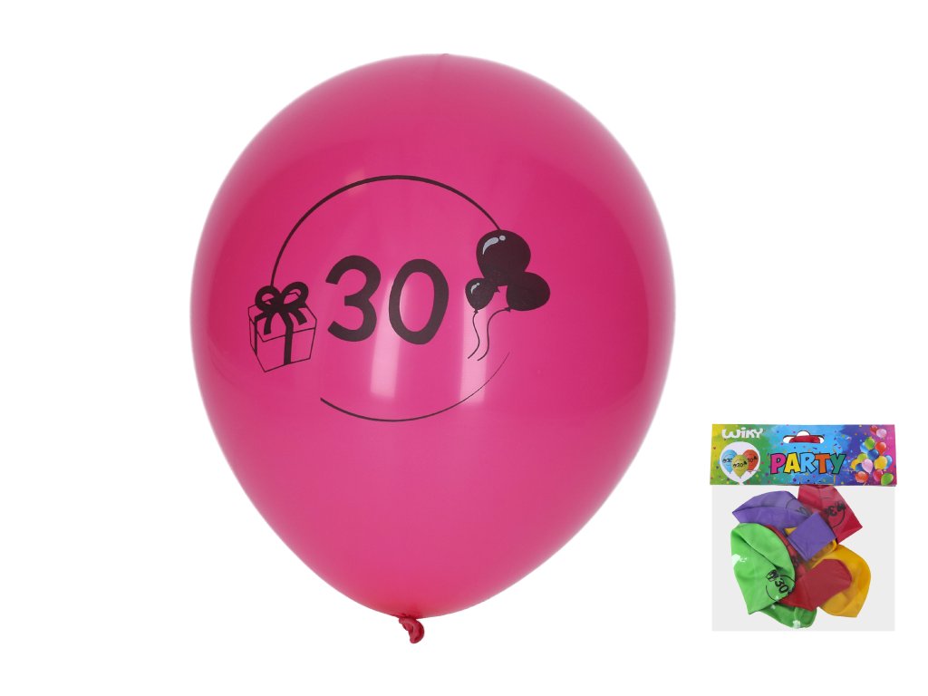 Nafukovací balónik 30 cm mix farieb - s číslom 30 - sada 5ksDodatočné parametre