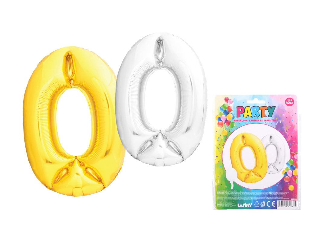 Balónik číslo 0 - 40 cm Farebné varianty - zlatá, strieborná Materiál - nylonDodatočné parametre