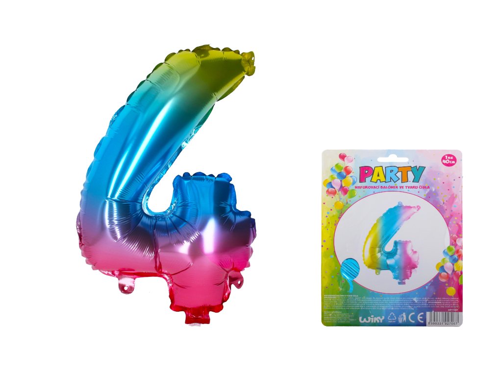 Dúhový nafukovací balónik v tvare čísla 4 je vhodný ako doplnok na narodeninovú párty! Veľkosť: 40 cmDodatočné parametre