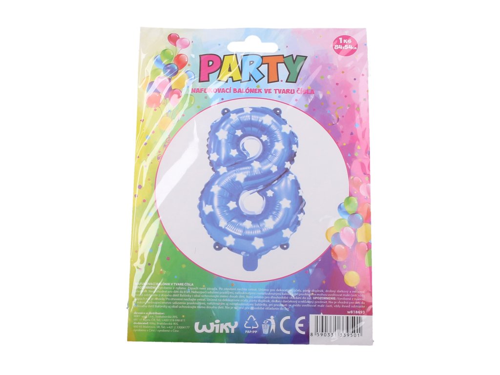 Modrý nafukovací balónik s hviezdičkami v tvare čísla je vhodný ako doplnok na narodeninovú párty! Rozmery: 84 x 54 cmDodatočné parametre