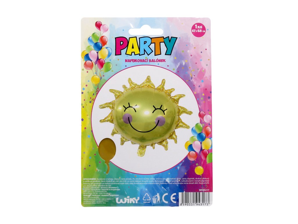 Balónik nafukovací v tvare slnka. Rozmery: 67x68 cm vo vyfúknutom stave.Dodatočné parametre