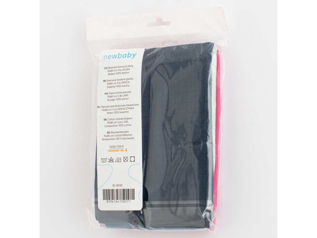 Bavlnené detské plienky českej značky New Baby vo zvýhodnenej sade, sú nepostrádateľnou súčasťou výbavičky pre bábätko. Balenie obsahuje 3 ks. Vhodne zvolené farby pre dievčatká. Plienky sú vyrobené zo 100% bavlny. Sú hygienické, nespôsobujú alergickú reakciu a napomáhajú zdravému vývoju bedrových kĺbov u novorodencov. Môžete ich využívať nielen na prebaľovanie ale aj pod hlavičku bábätka v postieľke či kočíku. Vysoká kvalita spracovania.Charakteristika: