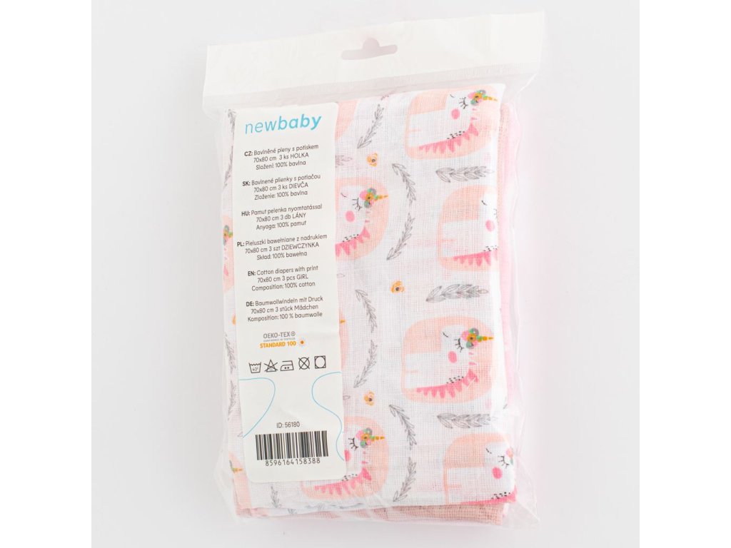 Bavlnené detské plienky českej značky New Baby vo zvýhodnenej sade, sú nepostrádateľnou súčasťou výbavičky pre bábätko. Balenie obsahuje 3 ks. Dve plienky s obrázkami a jedna jednofarebná. Vhodne zvolené farby a obrázky pre dievčatká. Plienky sú vyrobené zo 100% bavlny. Sú hygienické, nespôsobujú alergickú reakciu a napomáhajú zdravému vývoju bedrových kĺbov u novorodencov. Môžete ich využívať nielen na prebaľovanie ale aj pod hlavičku bábätka v postieľke či kočíku. Vysoká kvalita spracovania.Charakteristika:
