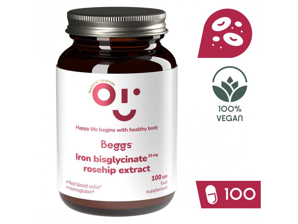 Beggs Iron bisglycinate 20 mg, rosehip extract (100 kapsúl)