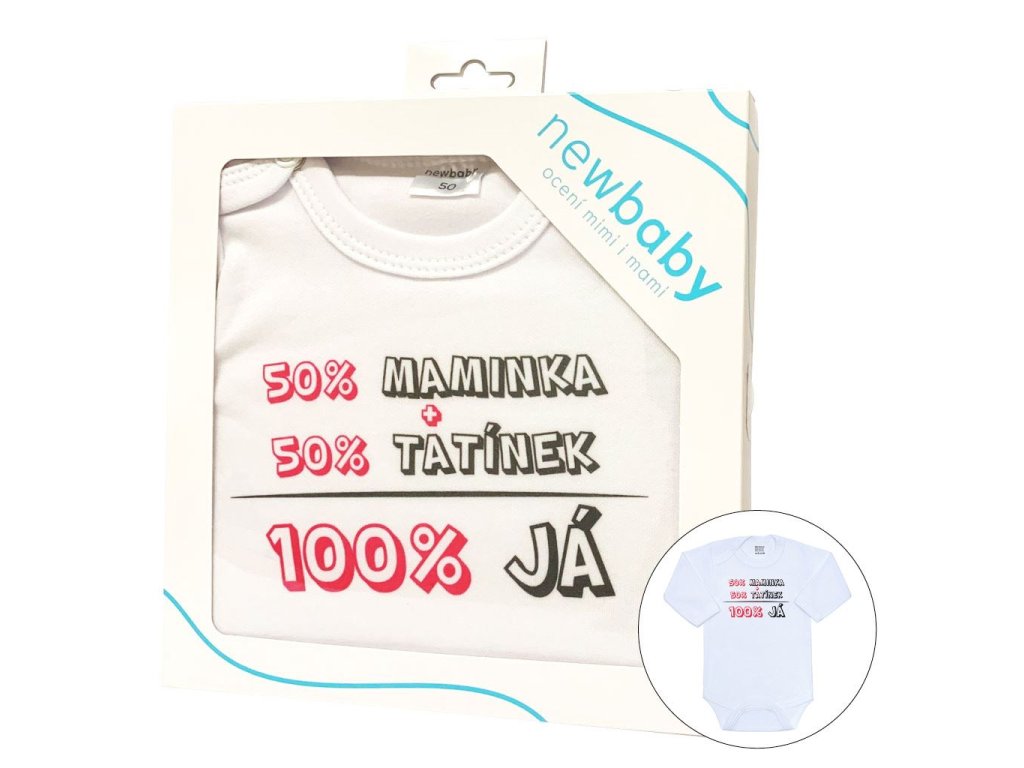Body s potlačou New Baby 50% MAMIČKA + 50% Otecko - 100% JA ružové - darčekové balenie