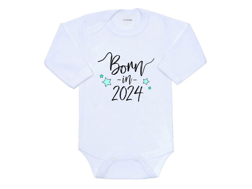 Originálne bavlnené dojčenské body s dlhým rukávom New Baby s nápisom Born in 2024. Farby použité na potlač sú certifikované a vhodné pre bábätká. Je vyrobené z príjemného a kvalitného materiálu, v ktorom sa bude Vaše bábätko cítiť príjemne. Body má zapínanie na cvočky na ramienku a medzi nožičkami, čo uľahčuje obliekanie a prebaľovanie. Doprajte Vášmu bábätku vyniknúť v originálnom bode. Zloženie: 100% bavlna.