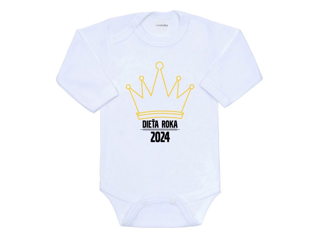 Originálne bavlnené dojčenské body s dlhým rukávom New Baby, s vtipným nápisom DIEŤA ROKA 2024. Farby použité na potlač sú certifikované a vhodné pre bábätká. Je vyrobené z príjemného a kvalitného materiálu, v ktorom sa bude Vaše bábätko cítiť príjemne. Body má zapínanie na cvočky na ramienku a medzi nožičkami, čo uľahčuje obliekanie a prebaľovanie. Doprajte Vášmu bábätku vyniknúť v originálnom bode. Zloženie: 100% bavlna. Rozmery: obvod okolo hrudníka cca 38 cm, dĺžka rukáva cca 21 cm, celková dĺžka cca 33 cm.