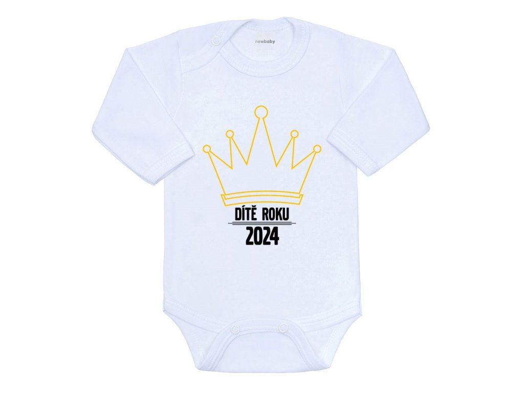 Originálne bavlnené dojčenské body s dlhým rukávom New Baby, s vtipným nápisom DIEŤA ROKA 2024. Farby použité na potlač sú certifikované a vhodné pre bábätká. Je vyrobené z príjemného a kvalitného materiálu, v ktorom sa bude Vaše bábätko cítiť príjemne. Body má zapínanie na cvočky na ramienku a medzi nožičkami, čo uľahčuje obliekanie a prebaľovanie. Doprajte Vášmu bábätku vyniknúť v originálnom bode. Zloženie: 100% bavlna. Rozmery: obvod okolo hrudníka cca 36 cm, dĺžka rukáva cca 18 cm, celková dĺžka cca 32 cm.