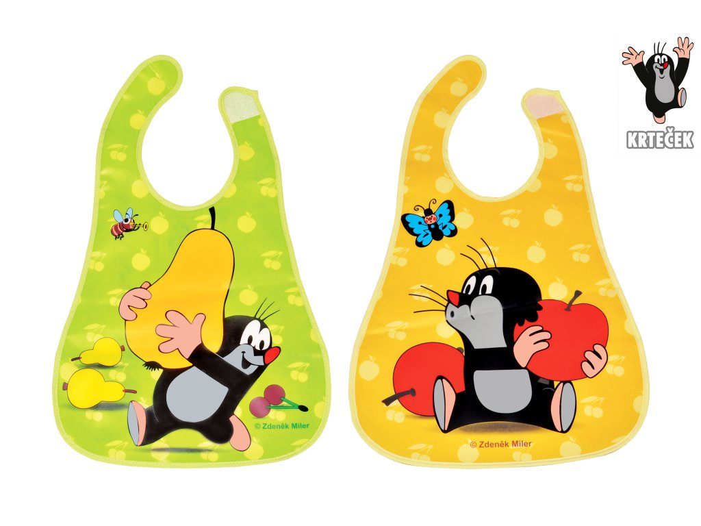 Krásny dievčenský a chlapčenský podbradník s motívom rozprávkového Krtka. Nielen ochráni oblečenie dieťaťa pred znečistením, ale zároveň vykúzli úsmev na tvári dieťaťa. Zapínanie na suchý zips.Dodatočné parametre