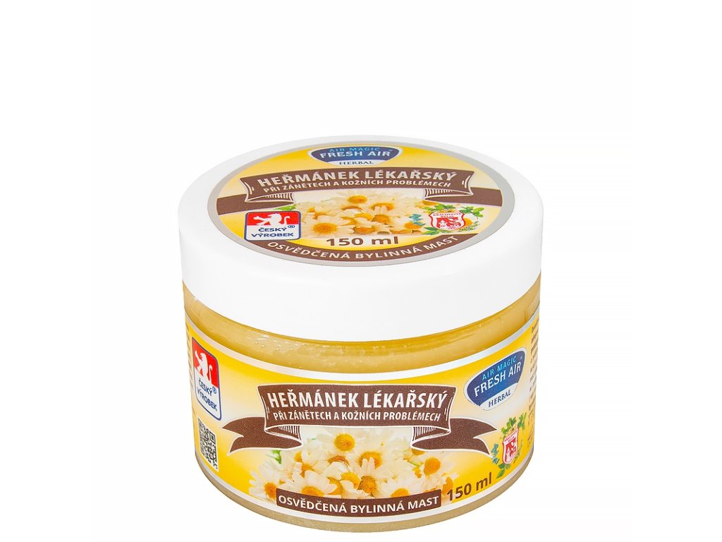 Použití: | Mast je uváděna jako „osvědčená bylinná mast s heřmánkem, který má protizánětlivé účinky, působí i proti bakteriím a virům“. |