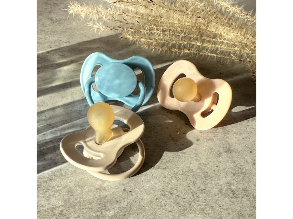 Kaučukový cumlík so špičkou okrúhleho tvaru v prírodných farbách z kolekcie NUDE. Je vyrobený z prírodného kaučuku, ktorý je charakteristicky žltkastý a matný. Cumlík neobsahuje BPA. V balení 1 kus.Výhody cumlíka: ventilačné otvory v štítku cumlíka umožňujú cirkuláciu vzduchu, odvod slín a zabraňujú tak podráždeniu pokožky okolo úst, dostupné v niekoľkých farbách modrej, krémovej a béžovej, bezpečnostný úchyt v cumlíku pevne drží, uľahčuje dieťaťu pohodlné uchopenie a rodičom. . Návod na obsluhu: Pred prvým použitím cumlík z hygienických dôvodov sterilizujte vo vriacej vode po dobu asi 5 minút. Po vychladnutí vytlačte zvyšnú vodu z cumlíka. Pred každým použitím cumlík dôkladne umyte v teplej vode. Nepoužívajte žiadne antibakteriálne ani chemické čistiace prípravky. Nadmerné používanie čistiacich prostriedkov môže spôsobiť poškodenie plastových dielov. Cumlík neumývajte v umývačke. Neuchovávajte v mrazničke ani nedávajte dieťaťu cumlík, ktorý bol vychladený v mrazničke, pretože by mohlo dôjsť k poškodeniu cumlíka. Nikdy nenamáčajte cumlík do sladkých substancií ani liekov - vystavujete dieťa nebezpečenstvu vzniku vady zubnej skloviny. Cumlík používajte maximálne 1-2 mesiace, potom ho z hygienických a bezpečnostných dôvodov vymeňte za nové. Ak cumlík zapadne dieťaťu do úst, NEPREDPADAJTE PANICE – cumlík je konštruovaný tak, že ho dieťa nemôže prehltnúť a vy ho v takýchto prípadoch môžete bezpečne vybrať. Cumlík vyberajte čo možno najopatrnejšie. Cumlík uchovávajte v čistom, suchom a uzavretom puzdre. Odporúčame nepoužívať cumlík pre dieťa staršie ako 3 roky. Pre bezpečnosť vášho dieťaťa. UPOZORNENIE! Pred každým použitím výrobok starostlivo skontrolujte. Natiahnite cumlík do všetkých smerov. V prípade akýchkoľvek známok poškodenia alebo opotrebenia ho vyhoďte. Používajte iba držiaky cumlíkov, ktoré boli testované v súlade s normou EN 12586. Na cumlík nikdy nepripínajte iné šnúrky alebo stuhy. Mohlo by dôjsť k uduseniu dieťaťa. Nenechávajte cumlík na priamom slnečnom svetle, v blízkosti tepelného zdroja alebo v dezinfekčných prostriedkoch dlhšie, než sa odporúča – môžete spôs obiť oslabenie špičky cumlíka. Informácie o výrobku uchovajte pre prípadné neskoršie použitie. Číslo série a dátum spotreby je uvedené na obale. Pre bezpečie vášho dieťaťa VAROVANIE! Pred každým použitím výrobok dôkladne skontrolujte. Ťahajte za silikónovú časť cumlíka vo všetkých smeroch. Pri prvých známkach poškodenia alebo opotrebovania materiálu ho ihneď vyhoďte. Používajte iba špeciálne stužky/retiazky na cumlíky, ktoré zodpovedajú norme EN 12586. Nikdy nepripevňujte k cumlíku iné stužky alebo šnúrky, vaše dieťa by sa nimi mohlo uškrtiť.