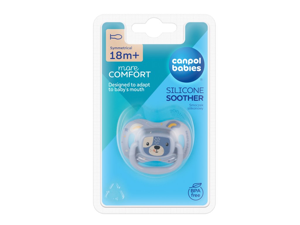 Canpol babies Cumlík silikónový symetrický CUTE ANIMALS 18m+ 1ks modrý