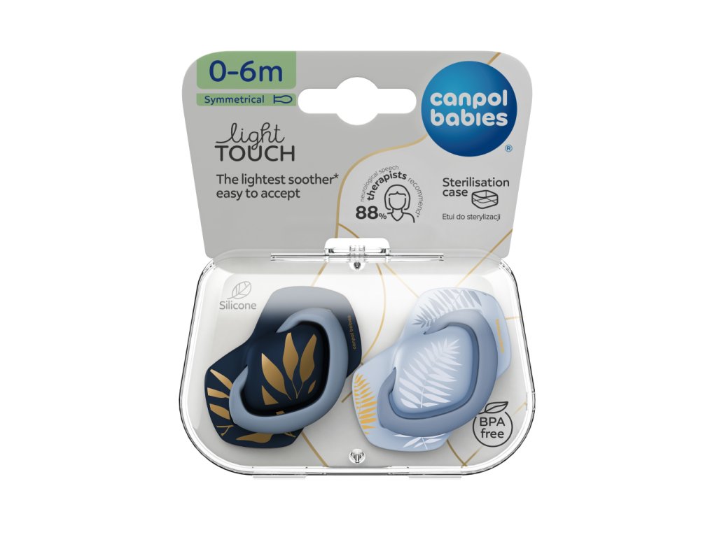 Cumlíky radu Light touch sú odporúčané ako prvý cumlík pre Vaše bábätko. * Sú výnimočne ľahké a prispôsobené tak, aby netlačili na skus dieťaťa, čo má podľa názoru 93% neurologopedov značný význam pre správny vývoj ústnej dutiny. Tento tvar cumlíkov je z fyziologického pohľadu považovaný za najvhodnejší. Výnimočne mäkká špička vyžaduje menšiu námahu pri saní, čo bábätku uľahčuje prijatie cumlíka. Špička je vyrobená zo 100% hypoalergénneho a bezpečného silikónu, je bez chuti a zápachu. Špeciálne tvarovaný štítok umožňuje dieťaťu voľne dýchať nosom a minimalizuje tak odtlačok cumlíka na jemnú tvár bábätka. Postranné otvory na štítku umožňujú detskej pokožke dýchať a zabraňujú tak jej podráždeniu. Pohodlný úchyt cumlíka uľahčuje jeho podávanie vášmu bábätku a umožňuje pripevniť k retiazke alebo stužke, ktorá ochráni cumlík pred stratou, pádom na zem alebo ušpinením. Ľanovej rúre. Na zaistenie hygienickej čistoty cumlíkov stačí trocha vody a 2 minúty. Canpol babies Light touch cumlíky sú veľmi odolné voči deformácii. Pri ich výrobe neboli použité BPA ani iné škodlivé látky. Symetrický silikónové cumlíky Canpol babies Light touch sa odporúčajú pre deti vo veku 0-6 mesiacov. Cumlík je dostupný v dvoch farbách a rôznych veľkostiach - rastie spoločne s vašim bábätkom. *Na základe prieskumu vykonaného spoločnosťou Canpol Sp. z oo v skupine 25 neurologopedov v roku 2020. Extrémne ľahký cumlík je odporúčaný 88% neurologopedov * ako prvý cumlík pre vaše bábätko. Podľa názoru 93% neurologopedov * ľahký štítok netlačí na skus bábätka a má významný vplyv pre správny vývoj. z oo v skupine 25 neurologopedov v roku 2020."Cudlík Light touch spĺňa všetky neurologopedické kritériá pre výber cumlíka v prvých mesiacoch života bábätka."Marcelina Przeździw - neurologopedická terapeutka, vysokoškolská lektorka. Výnimočne ľahká a mäkká silikónová špička vyžaduje menej námahy pri saní a uľahčuje bábätku prijatie cumlíka. Špička je vyrobená zo 100% hypoalergénneho a bezpečného silikónu, bez chuti a zápachu. Silikónová špička je odolná proti deformácii. Tvarovaný štítok cumlíka pod nosom umožňuje bábätku voľne dýchať. Dezinfekčné puzdro na rýchlu a pohodlnú dezinfekciu cumlíkov v mikrovlnnej rúre. Navrhnuté európskymi dizajnérmi a vyrobené v EÚ. Pokyny pre dezinfekciu v puzdre:1. Pred prvým a každým ďalším použitím umyte dezinfekčné puzdro v teplej vode s jemným saponátom, dôkladne opláchnite.2. Do spodnej časti puzdra nalejte 25 ml prevarenej vody. DÔLEŽITÉ upozornenie, ak pridáte malé množstvo vody môžete puzdro znehodnotiť. Pokiaľ pridáte naopak viac ako 25ml vody nebude dezinfekcia cumlíkov vykonaná správne.3. Vložte cumlíky do puzdra.4. Nasaďte hornú časť veka a pevne puzdro zatvorte.5. Uzavreté puzdro vložte do mikrovlnnej rúry.6. Mikrovlnú rúru nastavte na 750-1000W - doba dezinfekcie sú 2 minúty. Neprekračujte dobu dezinfekcie.UPOZORNENIE!Dezinfekčné puzdro by malo byť počas dezinfekcie umiestnené na rovnom povrchu. Pred vybratím z mikrovlnnej rúry vždy počkajte aspoň 5 minút, kým puzdro vychladne. Pri vybratí a otváraní puzdra buďte opatrní. Vylejte zostávajúcu vodu z puzdra cez určený otvor, opláchnite a osušte. Pri vybratí dezinfikovaných cumlíkov buďte zvlášť opatrní, pretože môžu byť horúce. Počas dezinfekcie sa môže do cumlíka dostať voda. Pred použitím cumlíka vodu odstráňte. Pred ďalšou dezinfekciou počkajte 15 minút, aby puzdro úplne vychladlo. Ako používať: Pred prvým použitím prípravok vložte na 5 minút do vriacej vody. Potom po vychladnutí vytlačte zvyšnú vodu. To je nevyhnutné na zabezpečenie hygieny. Pred každým použitím cumlík umyte teplou vodou. Potom prelejte vriacou vodou. Cumlík je možné dezinfikovať v parných/elektrických sterilizátoroch alebo v priloženom puzdre podľa dodaného návodu. Na čistenie nepoužívajte antibakteriálne alebo abrazívne čistiace prostriedky. Príliš vysoké koncentrácie čistiacich prostriedkov môžu poškodiť plastové diely. Neumývajte cumlík v umývačke riadu. Neponárajte cumlík do žiadnej sladkej tekutiny alebo liekov, pretože to môže spôsobiť zubný kaz. Aby ste zaistili pohodlie a bezpečie vášho bábätka, vymieňajte cumlík každé 1-2 mesiace. Pokiaľ si dieťa vloží celý cumlík do úst, NEPREDPAĎAJTE panike. Cumlík je navrhnutý tak, aby ho dieťa nemohlo prehltnúť. Akonáhle si všimnete, že vaše dieťa vložilo do úst celý cumlík, vyberte ho čo najšetrnejšie. Uchovávajte cumlík v čistom, suchom a uzavretom puzdre. VAROVANIE! Pred každým použitím výrobok starostlivo skontrolujte. Zatiahnite za cumlík všetkými smermi. Pokiaľ javia akékoľvek známky poškodenia, výrobok zlikvidujte. Nenechávajte cumlík na priamom slnku, v blízkosti zdrojov tepla alebo v dezinfekčnom prostriedku („sterilizačnom“ roztoku) dlhšie, než je odporúčané, mohlo by dôjsť k poškodeniu silikónovej špičky. Odporúčame odstaviť dieťa od cumlíka ideálne do 3 rokov veku dieťaťa. Pre bezpečie vášho dieťaťaVAROVANIE! Pred každým použitím výrobok dôkladne skontrolujte. Ťahajte za silikónovú časť cumlíka vo všetkých smeroch. Pri prvých známkach poškodenia alebo opotrebovania materiálu ho ihneď vyhoďte. Používajte iba špeciálne stužky/retiazky na cumlíky, ktoré zodpovedajú norme EN 12586. Nikdy nepripevňujte k cumlíku iné stužky alebo šnúrky, vaše dieťa by sa nimi mohlo uškrtiť.
