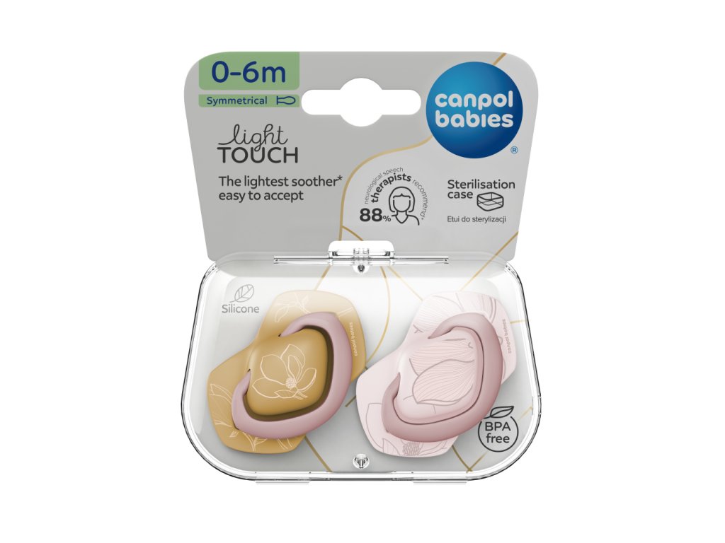 Canpol babies Cumlík silikónový symetrický Light touch GOLD 0-6m 2ks ružový