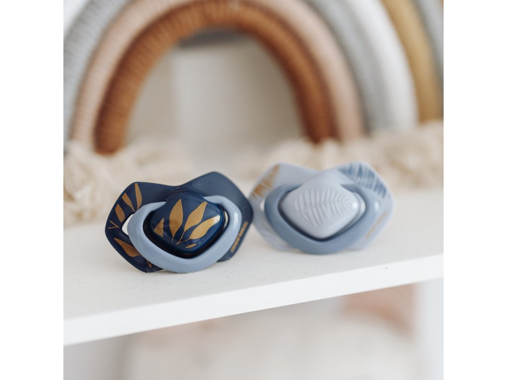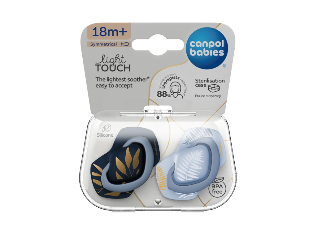 Canpol babies Cumlík silikónový symetrický Light touch GOLD 18m+ 2ks modrý