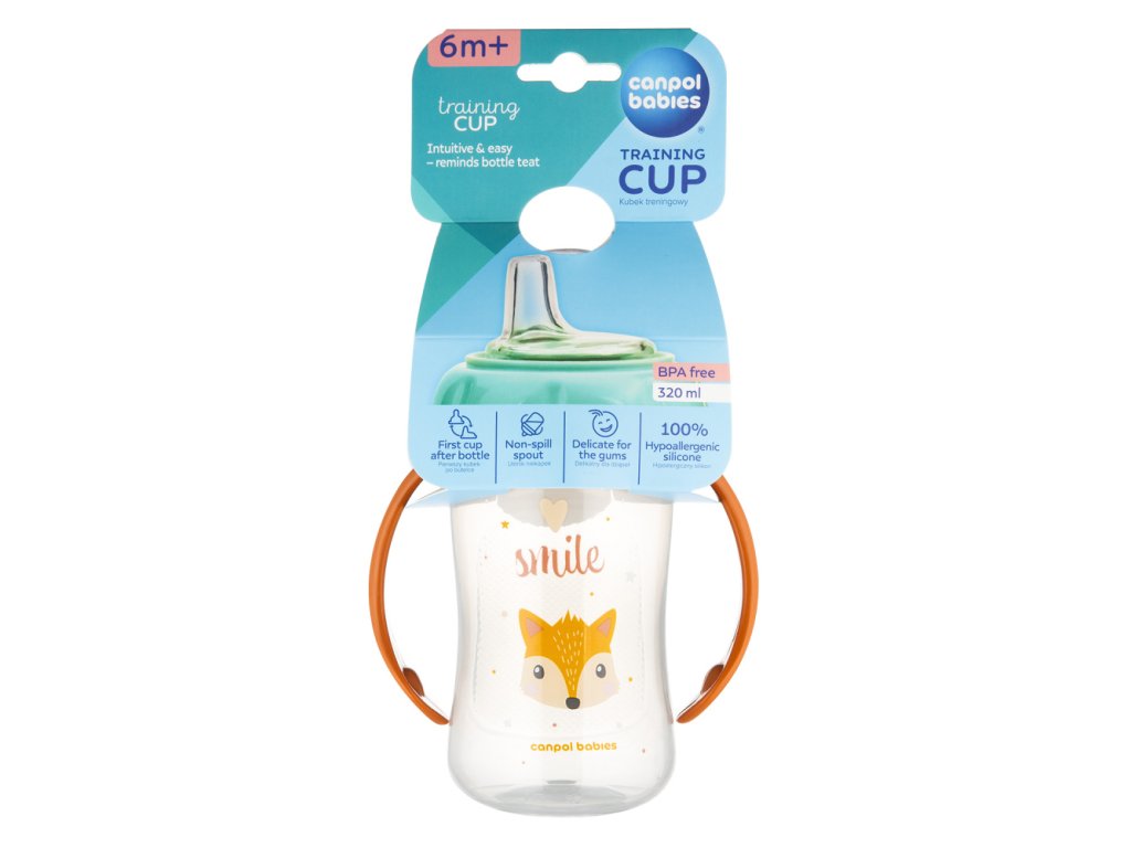 Canpol babies Hrnček tréningový CUTE ANIMALS so silikónovým náustkom 320ml líška