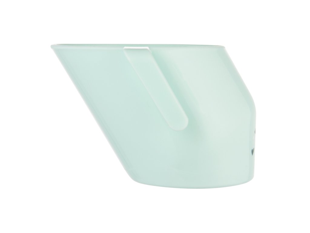 Skosený bočný okraj umožňuje pitie bez zakláňania hlavy, čo pomáha znižovať riziko udusenia.