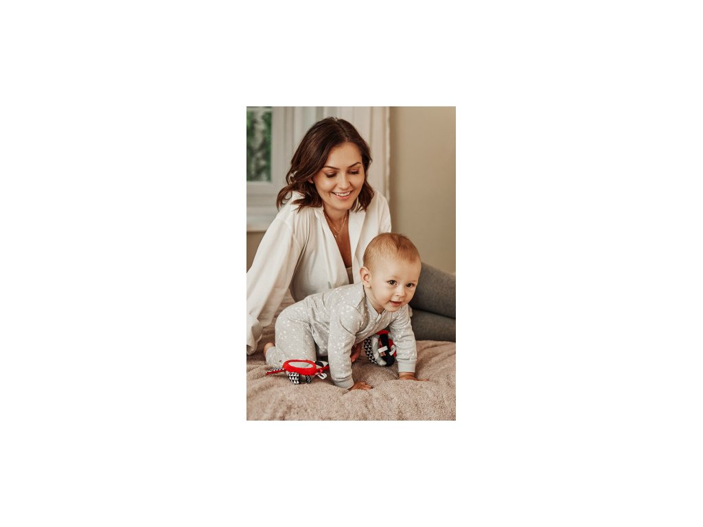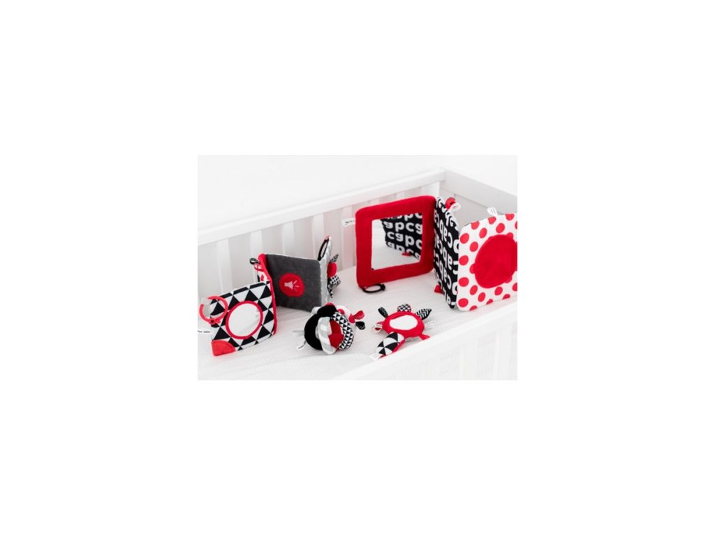 Kontrastná pískacia činka so zrkadielkom z kolekcie SENSORY je určená pre najmenšie deti. Vďaka praktickému tvaru je možné hračku jednoducho uchopiť. Činka disponuje pískacími elementmi, zrkadlom a látkovými stužkami. Senzorické farby stimulujú rozvoj zmyslov dieťaťa.