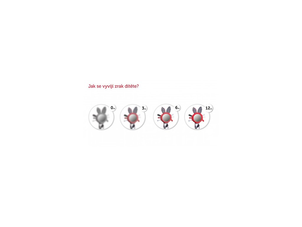 Zrak dieťaťa je po narodení najmenej rozvinutým zmyslom. Tma, ktorá prevláda v maternici, nedovoľuje, aby sa zrak v prenatálnom období plne rozvinul. Po narodení je zrak dieťaťa rozmazaný a hmlistý. Dieťa vidí iba obrysy v rozmedzí 20-30 cm, veľké tvary a prvky z prostredia. Asi po mesiaci začne vidieť farby, spočiatku červené a čierne. Asi za tri mesiace si začne všímať ďalšie výrazné farby. Približne vo veku šiestich mesiacov začína vidieť detaily na obrázkoch a tiež vidí oveľa jasnejšie. V dvanástom mesiaci života je už zrak dieťaťa plne vyvinutý ako u dospelého a stáva sa skvelým nástrojom na objavovanie sveta. Senzorické hračky z novej kolekcie SENSORY tak pomáhajú stimulovať zrak dieťaťa a trénujú schopnosť sústrediť pozornosť už od prvých týždňov života.
