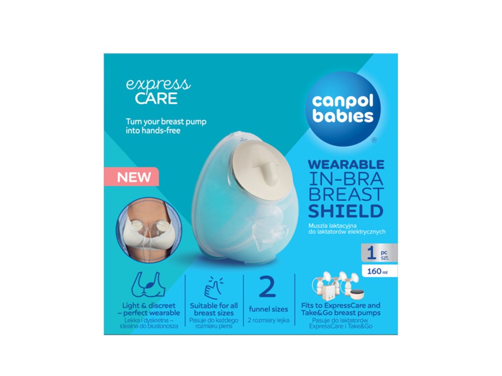 Lievik do podprsenky k odsávačkám premení vašu odsávačku na hands-free - uvoľní vám vaše ruky a poskytne pohodlie pri odsávaní mlieka. Je kompatibilný s odsávačkami materského mlieka Canpol babies: Take&Go a dvojitou ExpressCare. Lievik je ľahký a diskrétny, ideálny pre nosenie v podprsenke a umožňuje pohodlné odsávanie mlieka aj pri každodenných činnostiach. Vetrací otvor v hornej časti lievika poskytuje voľnosť pohybu a zároveň zabraňuje rozliatiu mlieka počas používania. Lievik do podprsenky sa hodí pre všetky veľkosti pŕs. Zaisťuje pohodlie a bezpečnosť pri používaní. Správne tvarovaný lievik podporuje bezbolestné odsávanie mlieka - je šetrný k bradavke a nesťahuje ju príliš hlboko. Sada obsahuje dve veľkosti lievika (21 mm a 24 mm) – výber tej správnej pomáha dosiahnuť optimálny prietok mlieka. Naučte sa, ako vybrať správnu veľkosť lievika >>> Lievik do podprsenky Canpol babies k odsávačkám materského mlieka sa skladá iba z niekoľkých častí, takže sa ľahko čistí a skladá. Všetky časti neobsahujú škodlivý BPA (bisfenol A), takže sú bezpečné pre priamy kontakt s potravinami, vrátane materského mlieka. Nádoba má objem 160 ml. Balenie obsahuje 1 kus. Premeňte svoju odsávačku na Hands-Free a uvoľnite svoje ruky pre iné každodenné činnosti. Kompatibilné s odsávačkami materského mlieka Canpol babies: Take&Go a ExpressCare. ávanie materského mlieka. Praktické - ľahké preliatie materského mlieka do dojčenskej fľaše. Nádobka na materské mlieko o objeme 160ml. UPOZORNENIE! Produkt nie je samostatnou odsávačkou, ale iba nástavcom odsávačky materského mlieka. Neobsahuje motor ani silikónovú hadičku. Je kompatibilný s modelmi odsávačiek materského mlieka Canpol babies Take&Go (č. kat. 12/211) aj ExpressCare (č. kat. 12/212). SADA OBSAHUJE: 1x nádoba na mlieko, mm ana, 1x membránový kryt (viečko), 2x spätný ventil. Ako používať: Lievik do podprsenky je produkt, ktorý sa používa spolu s odsávačkami Canpol babies Take&Go a dvojitou ExpressCare na odsávanie materského mlieka. Výrobok nie je odolný voči vysokým teplotám. Udržujte zariadenie mimo horúcich povrchov a otvorený oheň. Nevkladajte výrobok do horúcej rúry.2. Nikdy nepoužívajte výrobok, ak vidíte poškodenie alebo opotrebenie materiálu, ktoré bránia alebo zhoršuje prevádzku zariadenia. Pred každým použitím výrobok skontrolujte.3. Výrobok je určený na použitie jedným užívateľom.4. Nepokúšajte sa sami opravovať alebo upravovať produkt.5. Používajte iba s odsávačkami mlieka Canpol babies Take&Go a ExpressCare.6. Pred prvým použitím umyte a vydezinfikujte všetky časti výrobku, ktoré prídu do priameho kontaktu s vašimi prsiami alebo mliekom.7. Po každom použití umyte všetky časti produktu.8. Buďte obzvlášť opatrní pri používaní výrobku v blízkosti detí.9. Nedovoľte, aby sa vaše dieťa hralo s dielmi produktu alebo produktom.10. Všetky súčasti uchovávajte mimo dosahu detí. Vyvarujte sa použitiu hrubých nástrojov, ktoré môžu poškriabať povrch. Pri čistení spätného ventilu nepoužívajte kefy alebo podobné predmety. Dávajte pozor, aby ste neprerazili ventil úplne. Nechajte komponenty prirodzene vyschnúť. Všetky časti produktu skladujte vo vetranom priestore. Produkt je možné sterilizovať. Sterilizácia časti produktov v tvrdej vode môže viesť k tvorbe usadenín.Dodatočné parametre
