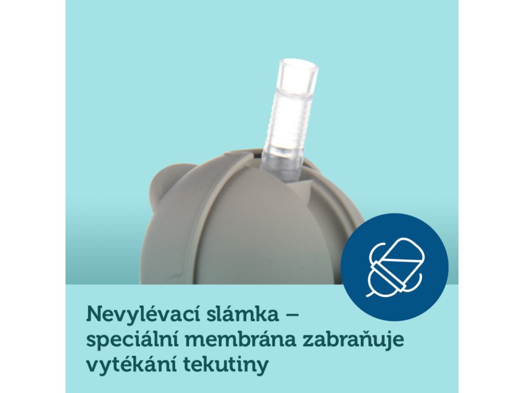 Speciální membrána ve slámce propouští tekutinu do slámky pouze tehdy, když dítě pije, zabraňuje tak rozlití a moderní víčko umožňuje snadné a pohodlné schování slámky a zaručuje 100% těsnost bez uniku tekutiny! Hrneček je vybaven pohodlnými širokými úchyty, které usnadňují držení hrnečku v malých ručičkách. Skvěle se bude hodit doma, na cestách i na procházce.