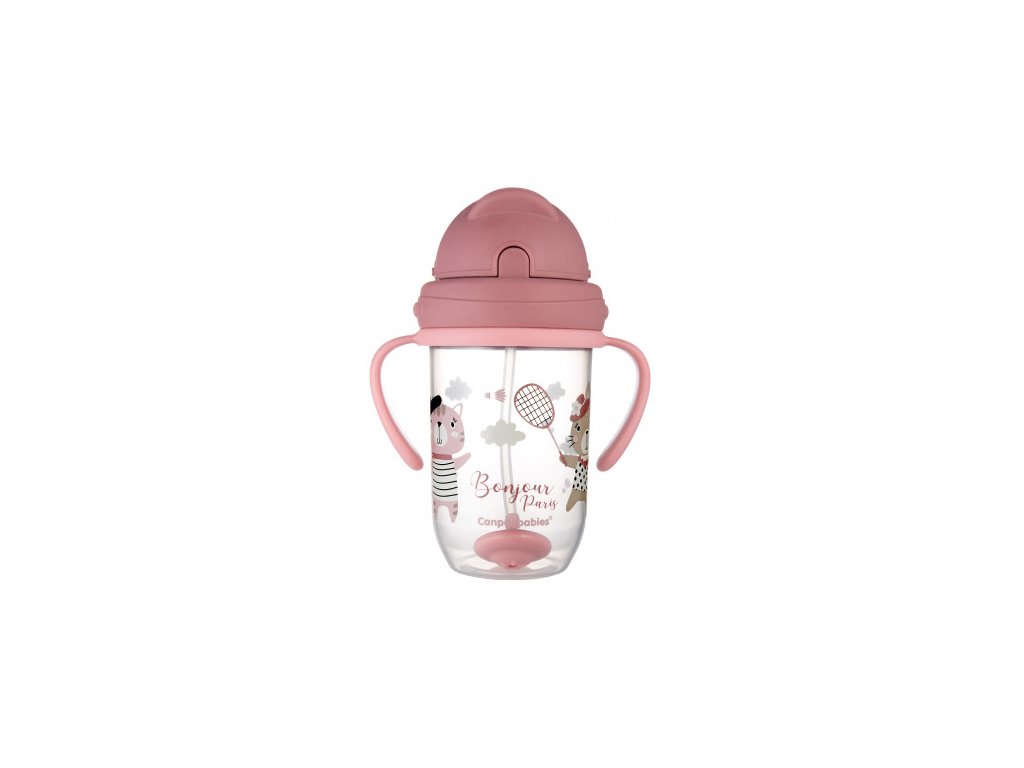 Canpol babies Nevylévací hrneček se slámkou a závažím 270ml BONJOUR PARIS růžový