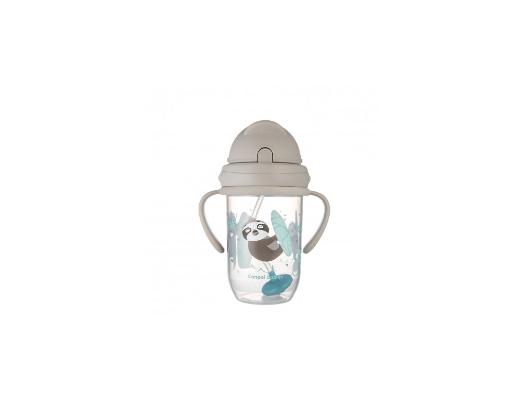 Canpol babies Nevylévací hrneček se slámkou a závažím EXOTIC ANIMALS 270ml šedý
