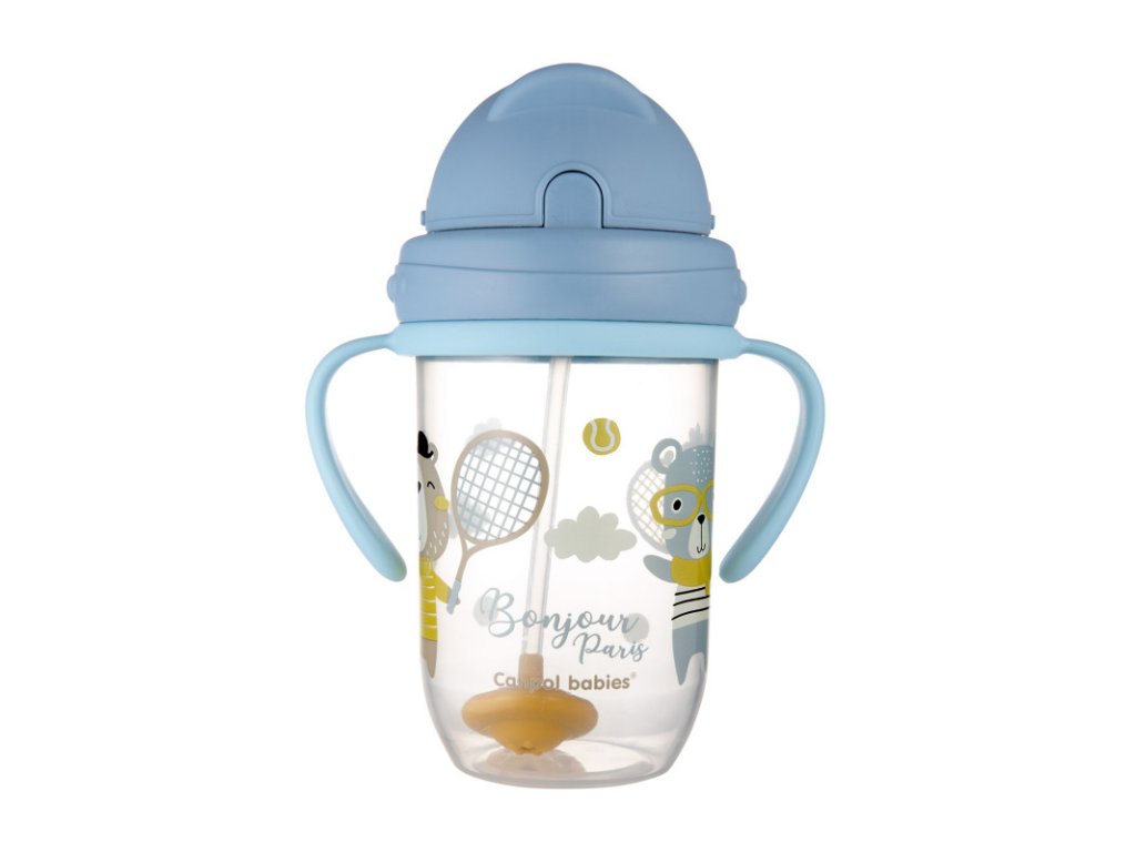 Canpol babies Nevylievací hrnček so slamkou a závažím 270ml BONJOUR PARIS modrý