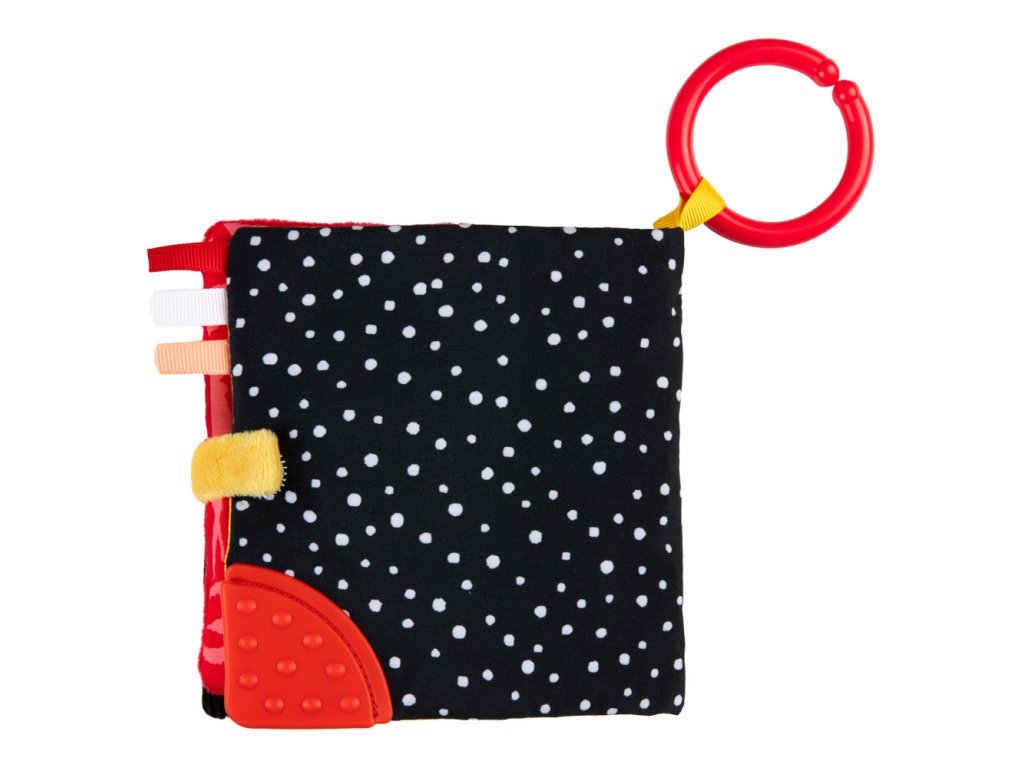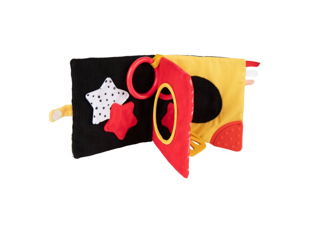 Senzorická knižka je perfektné prvé čítanie pre vašich najmenších. Zapína sa na suchý zips a je pre dieťa bezpečná. Knižka podporuje prirodzený vývoj dieťaťa aktiváciou zraku, hmatu a sluchu a podporuje nácvik manuálnych a motorických zručností u dojčiat a väčších detí. Je ideálny na cvičenie na podložke. Má mnoho zmyslových prvkov, ktoré priťahujú pozornosť dieťatka. Šuštiace prvky, hryzátko, zrkadlo a pískatko sú pre dieťatko zaujímavé pri prvom objavovaní sveta. Prvky podporujú detskú fantáziu, zvedavosť a vyzývajú dieťatko k hre, čím sa predlžuje doba ležania na brušku. Plastový krúžok umožňuje pripevniť hračku na kočík, hojdačku alebo autosedačku, vďaka tomu zabaví hračka vaše dieťa nielen doma, ale aj na prechádzke alebo na cestách. Ideálna pre deti od prvých okamihov života. Vhodné od 0m +. Ľahká a praktická, ideálna pre malé detské ručičky. Plastový krúžok - ideálny pre pripevnenie ku kočíku, detskému nosiču, hojdačke alebo autosedačke. ním.Podporuje rozvoj hmatu – prostredníctvom rôznych textúr materiálu a stužiek.Rozvíja koordináciu oko-ruka.Rozvíja sluchovú a motorickú koordináciu.Pomáha rozvíjať manuálne zručnosti - vďaka ľahko uchopiteľným prvkom.Ideálne pre deti od prvých okamihov života.Doplňujúce informácie:Hračka je určená Ak sa hračka zašpiní, jednoducho utrite vlhkou handričkou. Ako používať: Udržujte hračku čistú. Pokyny na čistenie sú uvedené na štítku. Utierajte vlhkou handričkou. Skontrolujte kvalitu produktu, než ho dáte svojmu dieťaťu. Vymeňte opotrebovanú alebo poškodenú hračku za novú. Než dáte hračku svojmu dieťaťu, odstráňte všetky obalové prvky, aby ste predišli riziku udusenia. Obal uschovajte mimo dosahu detí. Uschovajte inštrukcie na neskoršie použitie.