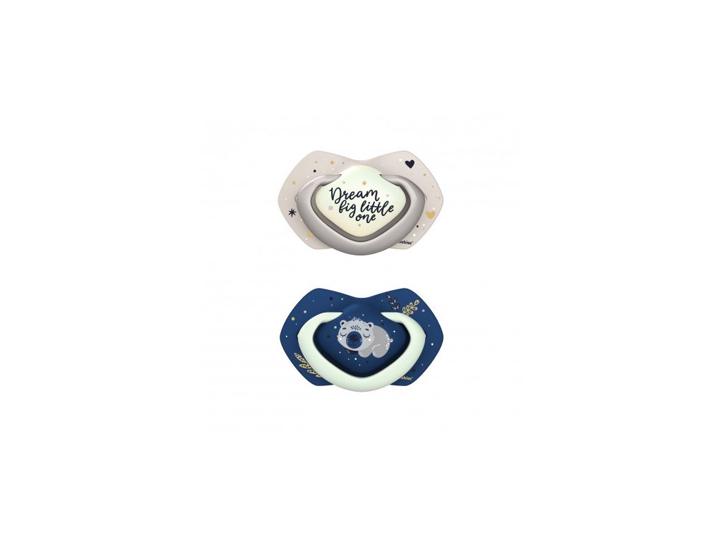Svietiace prvky v tme – uľahčujú hľadanie cumlíka v noci.