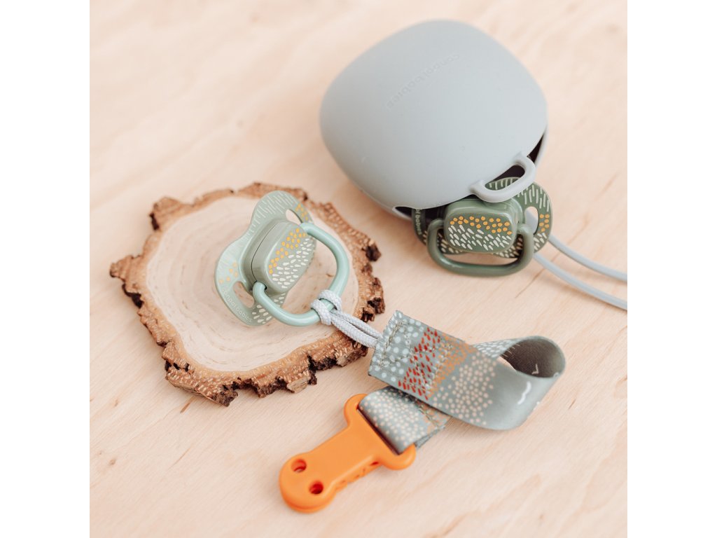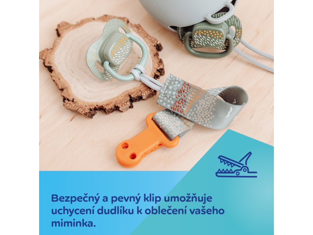 Stužka na cumlík z kolekcie MOUNTAINS ochráni obľúbený cumlík vášho bábätka pred pádom, ušpinením alebo stratou. Má univerzálny systém uchytenia cumlíka, ktorý sa hodí ku každému modelu cumlíka, s úchytom aj bez neho – stačí prevliecť šnúrku úchytom a je to! Má pevný klip, ktorý umožňuje pripevniť stuhu na oblečenie vášho dieťaťa, klip na cumlík je šetrný k oblečeniu - dobre drží a nezanecháva stopy a nepoškodzuje materiál. Stužka na cumlík Canpol babies je bezpečná a odolná. Udržuje cumlík čistý a pripravený na použitie. Ochráni obľúbený cumlík vášho bábätka pred pádom, ušpinením alebo stratou. Pevný klip umožňuje pripevniť cumlík so stuhou na oblečenie vášho dieťaťa. álna – hodí sa na všetky cumlíky, s úchytom aj bez neho. Balenie obsahuje 1 ks. UPOZORNENIE! Výrobok nie je hračka. Z bezpečnostných dôvodov uchovávajte výrobok mimo dosahu detí, aj keď ho práve nepoužívate. V prvých známkach opotrebenia alebo poškodenia výrobok zlikvidujte, nepoužívajte a vymeňte ho za nový. Poznámka: Pri pripevňovaní cumlíka stužku nenaťahujte. Stužku pripevnite iba na detské oblečenie. Nepoužívajte stužku/držiak na cumlík, keď vaše dieťa spí. Udržujte výrobok čistý. Odporúčané ručné pranie na 30 ° C s detským mydlom. Utrite vlhkou handričkou.Nepoužívajte žiadne antibakteriálne látky. Nevyvárajte. Nesterilizujte. Pri čistení nepoužívajte ostré alebo abrazívne materiály. Skladujte na čistom mieste. Nenechávajte pásku v blízkosti zdroja tepla, mohlo by dôjsť k oslabeniu produktu. UPOZORNENIE pre bezpečnosť vášho dieťaťa! Pred každým použitím starostlivo skontrolujte. Pri prvých známkach poškodenia alebo opotrebenia vyhoďte. Nikdy nepredlžujte stuhu! Nikdy nepripevňujte na šnúry, stuhy, šnúrky alebo voľné časti odevu. Dieťa môže byť uškrtené.Nepoužívajte v postieľke, v posteli alebo keď je vaše dieťa bez dozoru.Výrobok nie je hračka. Nepoužívajte stuhu ako hračku alebo hryzátko. Uchovávajte mimo dosahu detí, aj keď sa nepoužíva. Pre bezpečie vášho dieťaťa VAROVANIE! Pred každým použitím výrobok dôkladne skontrolujte. Pri prvých známkach poškodenia alebo opotrebovania materiálu ho ihneď vyhoďte. Nikdy nepredlžujte stužku/retiazku na cumlík! Nikdy nepripevňujte na iné šnúrky, stužky, šnúrky alebo voľné časti oblečenia, mohlo by dôjsť k uškrteniu dieťaťa.