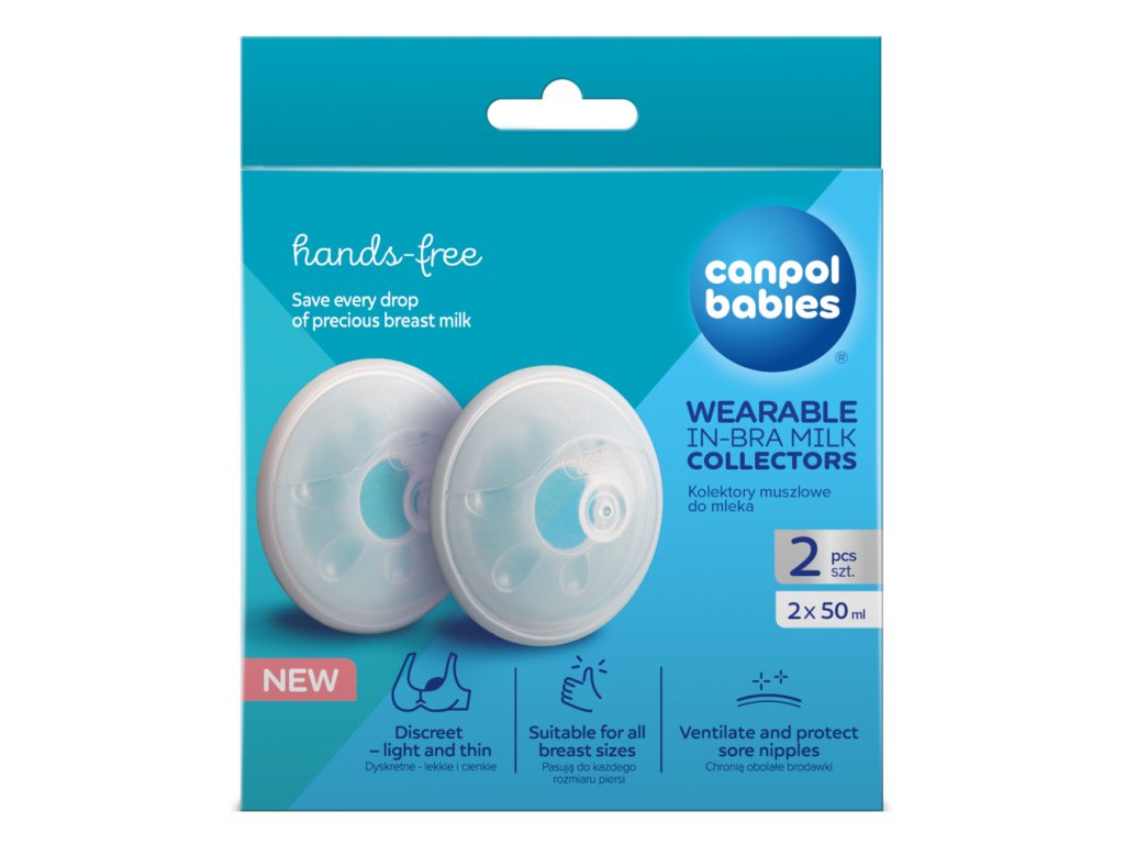 Slúži aj ako ďalšia ochranná vrstva pre citlivé bradavky a zabraňujú oderu o oblečení. Zberač mlieka sa skladá z dvoch častí, ktoré sa ľahko zostavujú a rozkladajú: zberný lievik, ktorý zhromažďuje mlieko a zabraňuje znečisteniu podprsenky, a mäkký silikónový kryt bradavky, ktorý je šetrný k citlivým prsiam. Každý zberný lievik pojme až 50 ml mlieka, takže sa nemusíte báť, že samovoľne vytekajúce mlieko z lievika vytečie a zašpiní podprsenku. Mlieko zhromaždené v zbernom lieviku sa dá ľahko preniesť do fľaše bez straty jedinej kvapky mlieka. Tvar zberačov mlieka umožňuje ich ľahké čistenie a sterilizáciu. Súčasťou sady je praktické vrecko pre jednoduché hygienické skladovanie. Zberače mlieka Canpol babies sú univerzálne a sú vhodné pre všetky veľkosti bradaviek.
