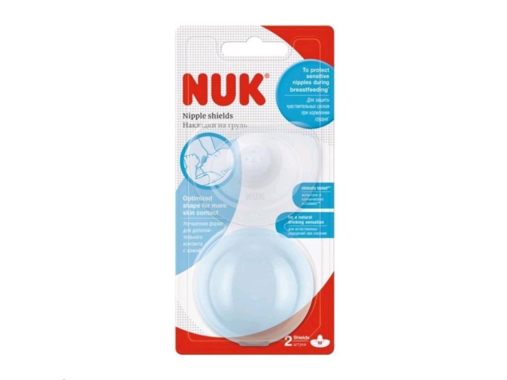 Prsné klobúčiky NUK. Chráni citlivé bradavky počas dojčenia. V balení 2 ks. Veľkosť M.Klinicky testované *