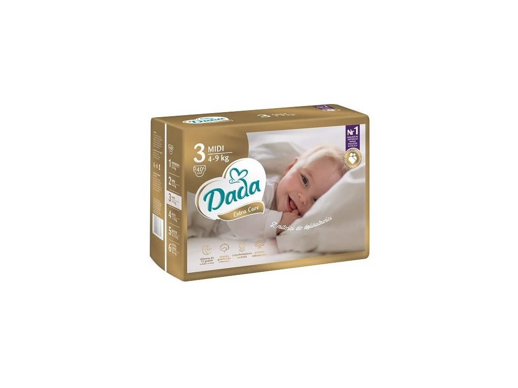 Spoločnosť Dada, radiaca sa medzi obľúbených výrobcov kvalitných detských plienok, nezaspáva na vavrínoch a ide s dobou. Dôkazom sú nové, ešte lepšie plienky Extra Care, ktoré poznáte podľa zlatého balenia. Majú inovatívnu technológiu, ktorá udrží zadoček vášho dieťatka v suchu ešte dlhšiu dobu. Plienky Dada sú dermatologicky testované a sú tiež jedinými poľskými plienkami vytvorenými v spolupráci s Inštitútom matky a dieťaťa.